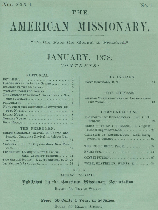 Title: The American Missionary — Volume 32, No. 01, January, 1878