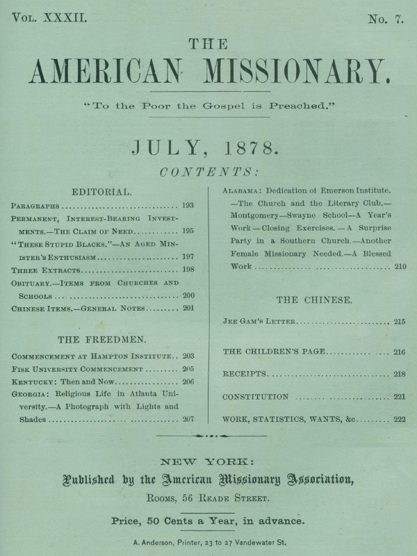 Title: The American Missionary — Volume 32, No. 07, July 1878
