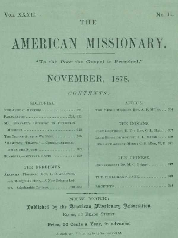 Title: The American Missionary — Volume 32, No. 11, November, 1878
