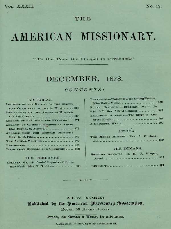 Title: The American Missionary — Volume 32, No. 12, December, 1878