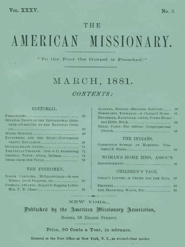 Title: The American Missionary — Volume 35, No. 3, March 1881