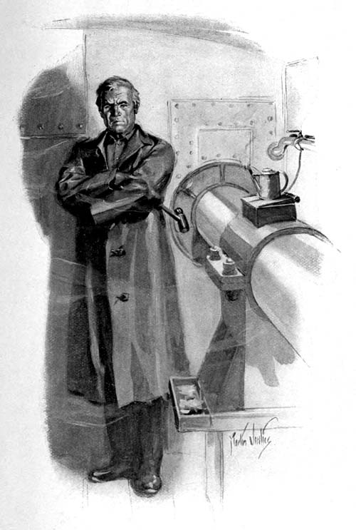 Captain Keighley, thus far, had moved with a certain swift calmness, speaking in a low voice, and using his eyes, as he used his hands, deliberately, without any darting glances or quick turns. But when he looked up the railed ladders that rose from tier to tier of machinery in the engine room, he heard a sound above him that he had not expected; and he started up those ladders at the double quick.