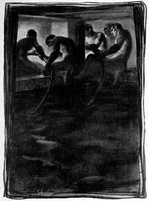 “Shine” broke for the hatchway, with two of the men at his heels. He was half way down the ladder when Doherty’s voice from below threatened: “The first man ’at comes down here, I’ll let the cats loose on him.”
