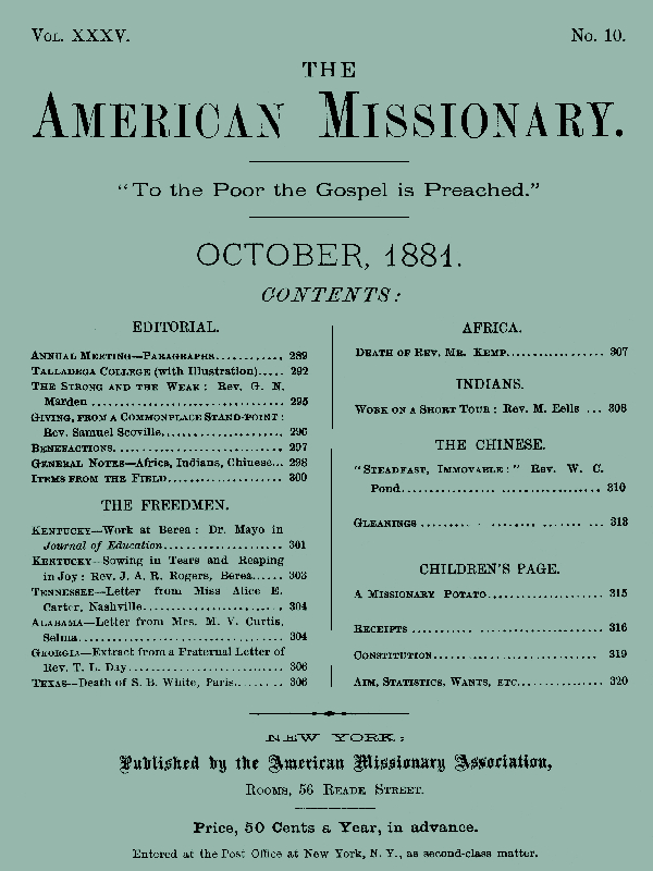 Title: The American Missionary — Volume 35, No. 10, October, 1881