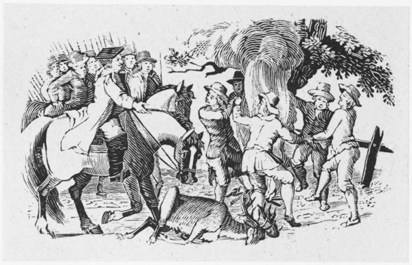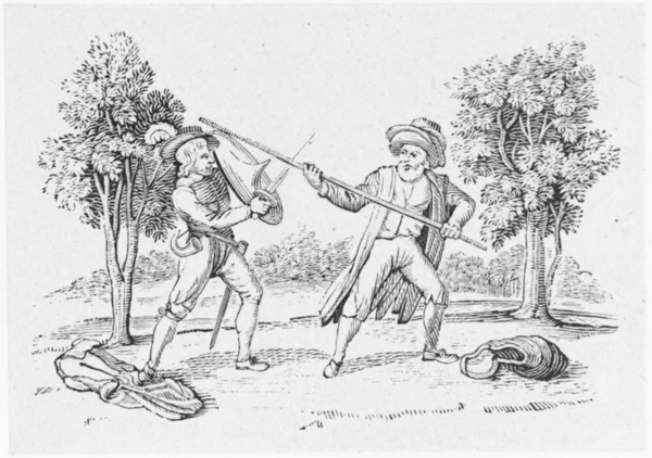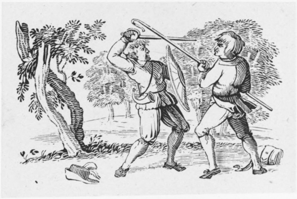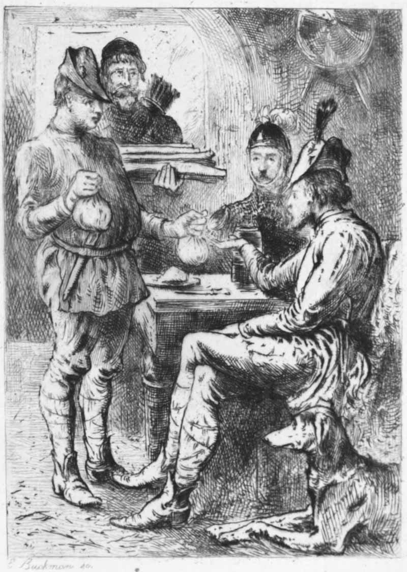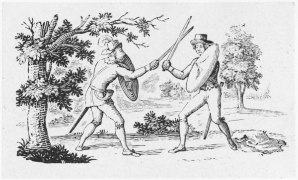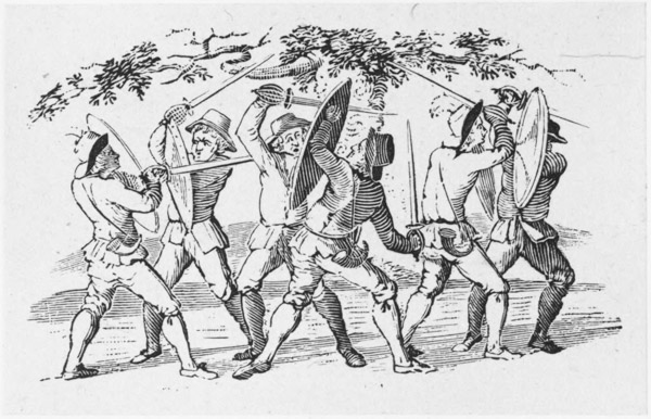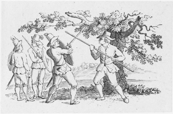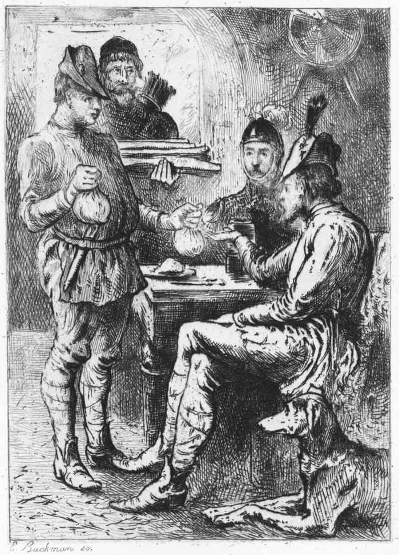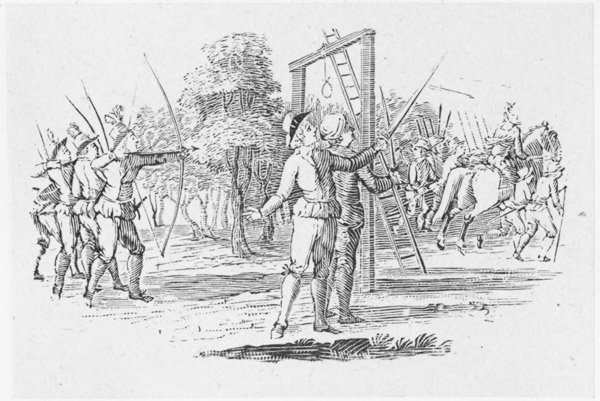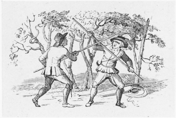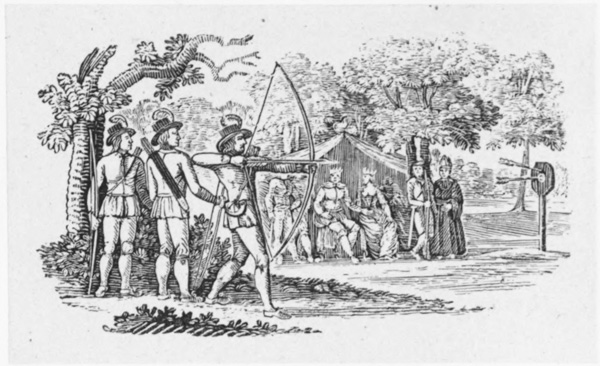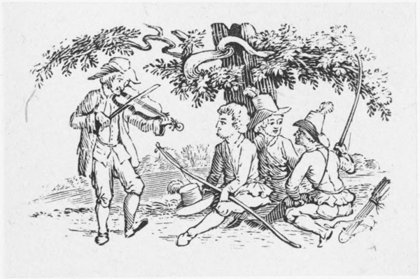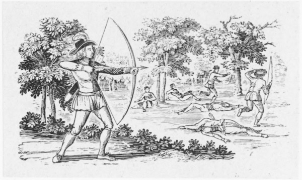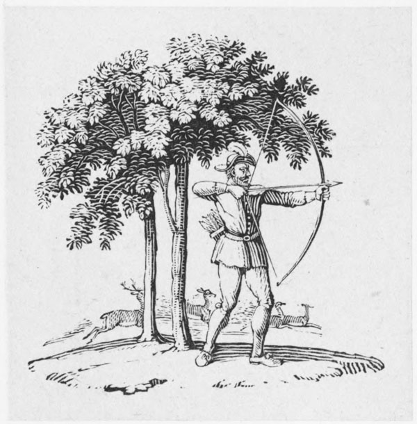 His company, in process of time, consisted of a hundred archers; men, says Major, most skilful in battle, whom four times that number of the boldest fellows durst not attack (11). His manner of recruiting was somewhat singular; for, in the words of an {iv} old writer, “whersoever he hard of any that were of unusual strength and ‘hardines,’ he would desgyse himselfe, and, rather then fayle, go lyke a begger to become acquaynted with them; and, after he had tryed them with fyghting, never give them over tyl he had used means to drawe [them] to lyve after his fashion” (12): a practice of which numerous instances are recorded in the more common and popular songs, where, indeed, he seldom fails to receive a sound beating. In shooting with the long bow, which they chiefly practised, “they excelled all the men of the land; though, as occasion required, they had also other weapons” (13).