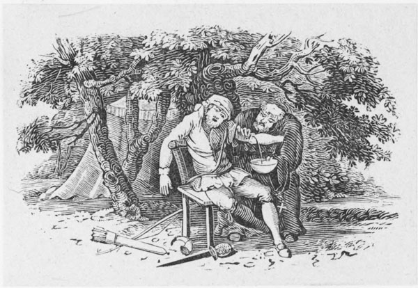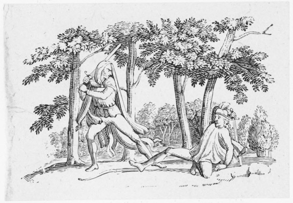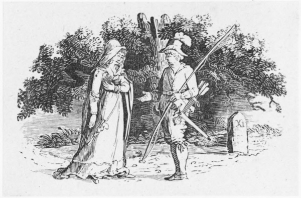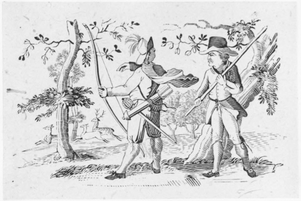 ROBIN HOOD was born at Locksley, in the county of Nottingham (2), in the reign of King Henry the Second, and about the year of Christ 1160 (3). His extraction was noble, and his true name ROBERT FITZOOTH, which vulgar pronunciation easily corrupted into ROBIN HOOD (4). He is frequently styled, and commonly reputed to have been, EARL OF HUNTINGDON; a title to which, in the latter part of his life, at least, he actually appears to have had some sort of pretension (5). In his youth he {iii} is reported to have been of a wild and extravagant disposition; insomuch that, his inheritance being consumed or forfeited by his excesses, and his person outlawed for debt, either from necessity or choice, he sought an asylum in the woods and forests, with which immense tracts, especially in the northern parts of the kingdom, were at that time covered (6). Of these, he chiefly affected Barnsdale, in Yorkshire, Sherwood, in Not­ting­ham­shire, and, according to some, Plompton Park, in Cumberland (7). Here he either found, or was afterward joined by, a number of persons in similar circumstances—