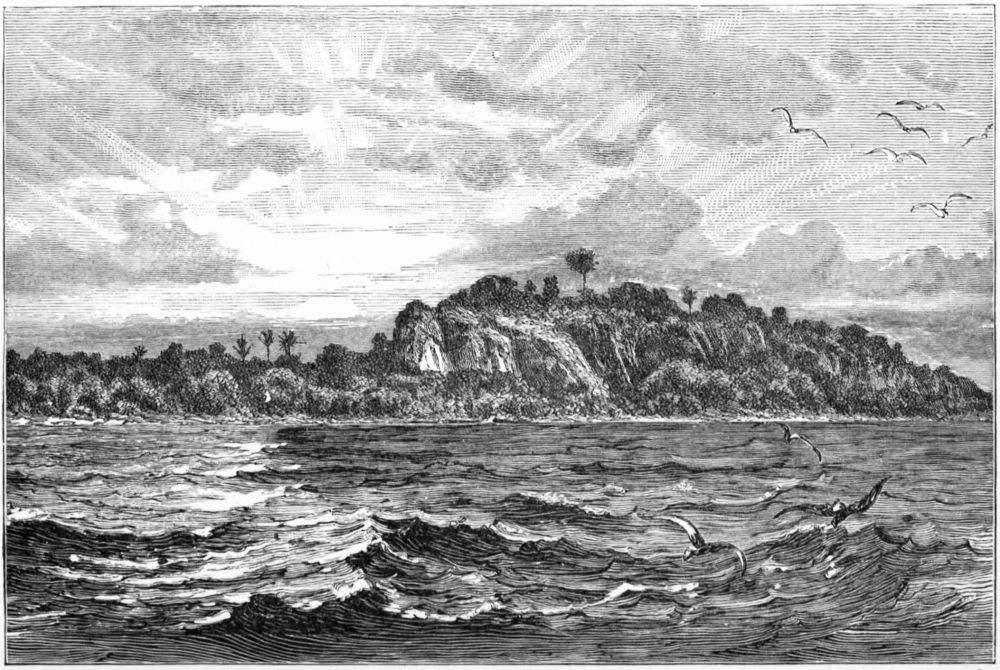 Our first day’s voyage was to some islands about four miles north of where we embarked. Here we stopped till night-time, so as not to have to pull in the heat of the sun when we started for the long voyage to the opposite shore. The point which we were to make on the opposite side was a bold headland, which Hatibu told me was called Kungwe. It was the southernmost point of land on that side visible from Kawele, and seemed to be about forty miles distant.