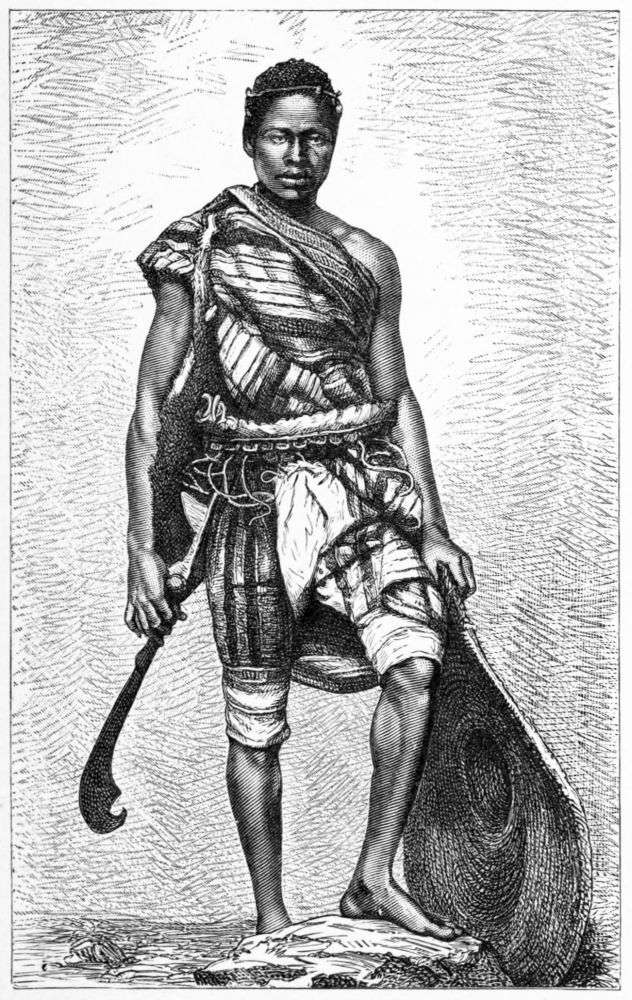 As soon as the first signs of dawn appeared behind the eastern hills all were on the alert, and finery, of the existence of which I had never dreamed, was donned by all. Spears and shields from Manyuema, and trophies of our fight beyond Nyangwe, were displayed, drums were placed on poop and forecastle, and from the stem of our ship Hatibu displayed a white and red flag, on which were written quotations from the Koran. Our men wore head-dresses of zebras’ manes and buf{327}faloes’ tails, bracelets of beads and copper were put on hands and wrists, and a liberal allowance of powder was served out to all who had the good fortune to possess muskets.