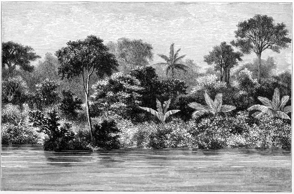 After a short halt for the purpose of cooking some food and resting, the iron-muscled Wanyamwesi shouted out that it was time to be on the march again, and though I know I felt tired and weary, there was no lagging. Soon we were rapidly descending the hillslopes towards a largish river which we saw lying below us. I asked how we were to cross this, as it seemed too broad to bridge; and as there were no signs of habitations near, we could not hope to find canoes like those in which we had been ferried across the Malagarazi.