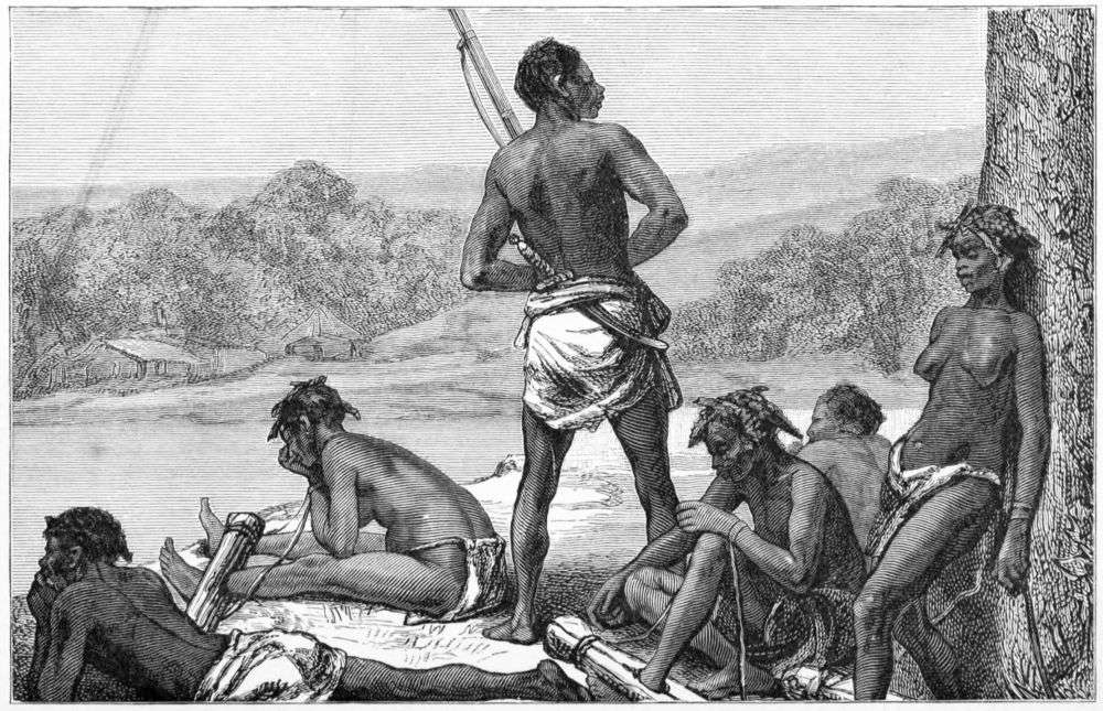 As soon as all these preparations were made we shoved off, and the whole of the men in the three canoes struck up a song of rejoicing, the only mournful faces being those of the unfortunate slaves, whose numbers by death and sale had greatly dwindled since the time we had left Nyangwe. People on shore soon heard the sound of our songs, and little knots of gazers clustered on the dwarf red cliffs, eagerly pointing out to each other the boats of Tipolo returning from Manyuema. Some rushed off to convey the news to the Arabs and the freemen, the men from “the island” and the sea, that news had come, and good news, of those who had crossed the lake and ventured into strange and distant lands.