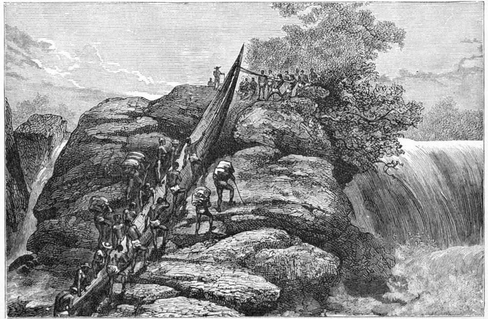 No sooner did the canoes touch the shore than they were seized by hundreds of willing hands and dragged up high and dry. In an instant Hatibu and his men were in the arms of their friends, who seized upon the ivory and loads to convey them to Tipolo’s house, even the women and children joining, tiny urchins of four and five begging to be allowed to carry something, no matter what, belonging to the men who had come from Manyuema.