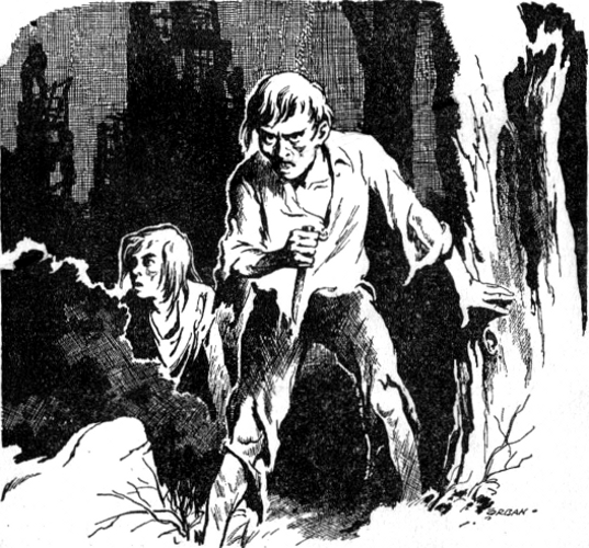 He dropped over the stone wall and flattened to the ground. He looked warily about him like a young wolf, head down, eyes up. His name was Steven—but he'd forgotten that. His face was a sunburned, bitter, filthy eleven-year-old face—tight lips, lean cheeks, sharp blue eyes with startlingly clear whites. His clothes were rags—a pair of corduroy trousers without any knees; a man's white shirt, far too big for him, full of holes, stained, reeking with sweat; a pair of dirty brown sneakers.