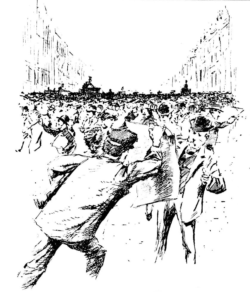 Je continuai ma route. Il y avait bien là, j’imagine, deux ou trois cents personnes se pressant et se coudoyant, les quelques femmes n’étant en aucune façon les moins actives.