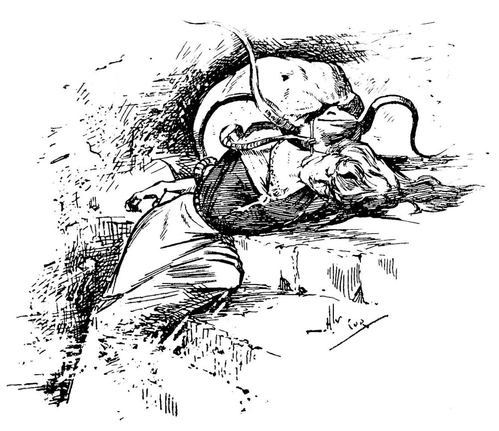 Je redescendis dans la salle à manger, j’y retrouvai, tels que l’artilleur et moi les avions laissés, le gigot et le pain, en fort mauvais état, et une bouteille de bière renversée. Mon foyer était désolé. Je compris combien était fou le faible espoir que j’avais si longtemps caressé. Alors, quelque chose d’étrange se produisit.