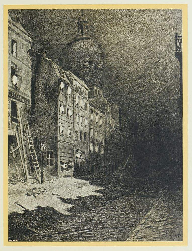 Il me faut avouer que la détresse et les dangers de ces moments ont laissé, dans mon esprit, une constante impression de doute et d’insécurité. J’écris, dans mon bureau, à la clarté de la lampe, et soudain, je revois la vallée, qui s’étend sous mes fenêtres, incendiée et dévastée; je sens la maison autour de moi vide et désolée. Je me promène sur la route de Byfleet, et je croise toutes sortes de véhicules, une voiture de boucher, un landau de gens en visite, un ouvrier à bicyclette, des enfants s’en allant à l’école, et soudain, tout cela devient vague et irréel, et je crois encore fuir avec l’artilleur, à travers le silence menaçant et l’air brûlant. La nuit, je revois la Poussière Noire obscurcissant les rues silencieuses, et, sous ce linceul, des cadavres grimaçants; ils se dressent devant moi, en haillons et à demi dévorés par les chiens; ils m’invectivent et deviennent peu à peu furieux, plus pâles et plus affreux, et se transforment enfin en affolantes contorsions d’humanité. Puis je m’éveille, glacé et bouleversé, dans les ténèbres de la nuit.