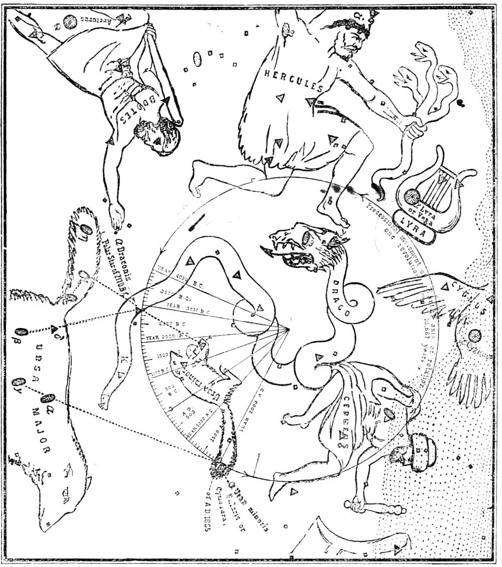 [186] With regard to a temple of Minerva using α Arietis at Tegea, Mr. Penrose writes:—"Minerva is allowed by the poets to have been able to use Jupiter's thunder, so this is no misappropriation of the star. Juno also seems to have claimed the use of α Arietis as at Samos, and at Girgenti it suits the orientation of the temple of Juno better than Spica. But Spica seems to have been connected with the worship of Juno and Diana in their more strictly female capacity."