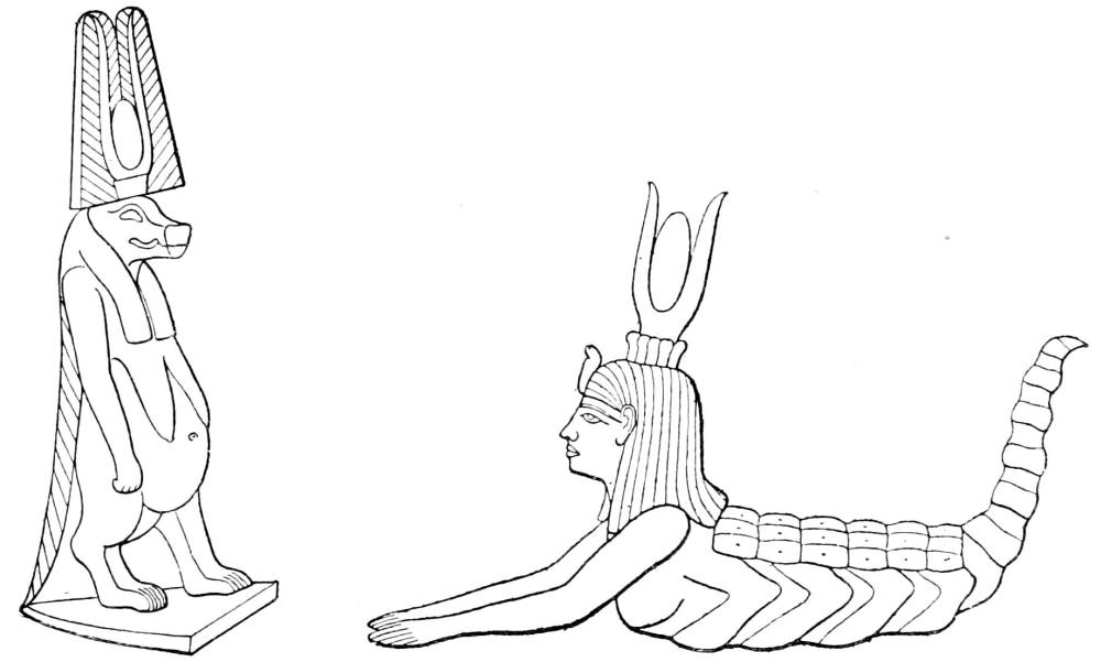 Of this future work, the most important, undoubtedly, is a re-survey of the temple sites, with modern instruments and methods. Next, astronomers must produce tables of the rising and setting conditions of the stars for periods far beyond those which have already been considered. The German Astronomical Society has published a table of the places of a great many stars up to 2000 B.C., but to carry on this investigation we must certainly go back to 7000 B.C., and include southern stars. While the astronomer is doing this, the Egyptologist, on his part, must look through the inscriptions with reference to the suggestions which lie on the surface of the inquiry. The astronomical and associated mythological data want bringing together. One part of that work will consist in arranging tables of synonyms like those to which I presently refer in the case of the goddesses. My own impression is that this work will not really be so laborious as the statement of it might seem to imply. I have attempted to go over the ground during the last two years as well as xii my ignorance would allow me, and I have arrived at the impression that the number both of gods and goddesses will be found to be extremely small; that the apparent wealth of the mythology depends upon the totemism of the inhabitants in the Nile valley—by which I mean that each district had its own special animal as the emblem of the tribe dwelling in it, and that every mythological personage had to be connected in some way with these local cults. After this work is done, it will be possible to begin to answer some of the questions which I have only ventured to raise.