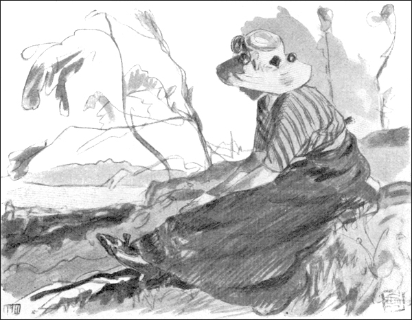 Le grand chapeau à coque de pavot vint à passer comme il coiffait de ses pots de terre ses derniers repiquages. Il l’avait vu sortir de la Truite d’or à trotte-menu, en vrai chapeau de paille qui ne tient à la tête que par une épingle et ne demande pas mieux que de s’envoler. Depuis l’autre semaine, on l’apercevait partout, rond et clair comme un hélianthe. Il grimpait les routes, filait sous bois, passait l’eau en barque, siestait dans l’île à l’ombre des peupliers. C’était un chapeau mutin, indiscipliné, tout à fait en vacances. M. Fauche maintenant savait à peu près la couleur des yeux qui étaient dessous, des yeux marron à petits semis d’or comme les cailloux rouilleux de l’eau, au passage des truites.
